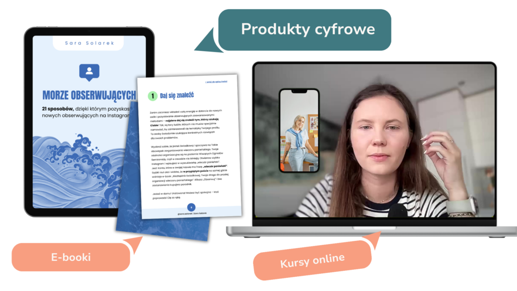 co 30 dni wyzwanie tematyczne np. znajdź pomysł na produkt cyfrowy, zaprojektuj spójny profil na IG itp. → każde o wartości 127 zł; 12 x 127 zł = 1524 zł