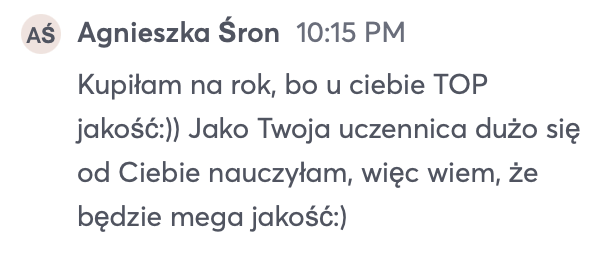 Masz pełną kontrolę – możesz w każdej chwili anulować subskrypcję jednym kliknięciem ze swojego konta. Model subskrypcyjny umożliwia mi stałe dodawanie nowych materiałów. Wiem, że możesz się bać podpiąć kartę, co rozumie, ale zapewniam, że korzystamy ze sprawdzonych i bezpiecznych pośredników płatności 🥰